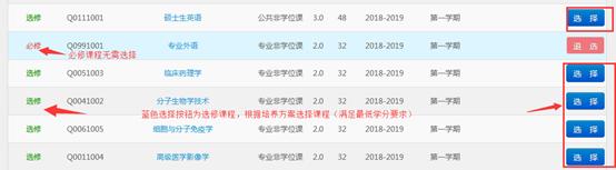 (若课程为必修,则系统自动选上且无法进行退选的操作,若课程为选修,则学生根据培养方案进行实际操作。)