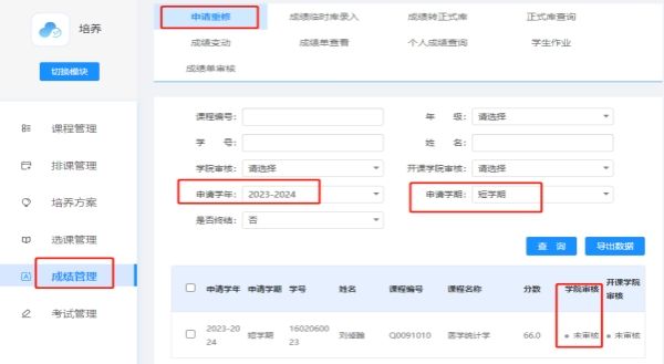 3.开课学院审核:7月20-7月22日,培养--成绩管理--申请重修(开课学院)页面。开课学院审核通过后,学生数据会进入排课计划,各开课学院排课时务必注意,2021级及以前学生重修课程代码与2022级不同,系统中需要单独排班。