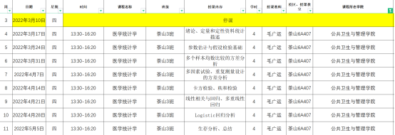 关于2021-2022学年第二学期《医学统计学》研究生课程调课的通知