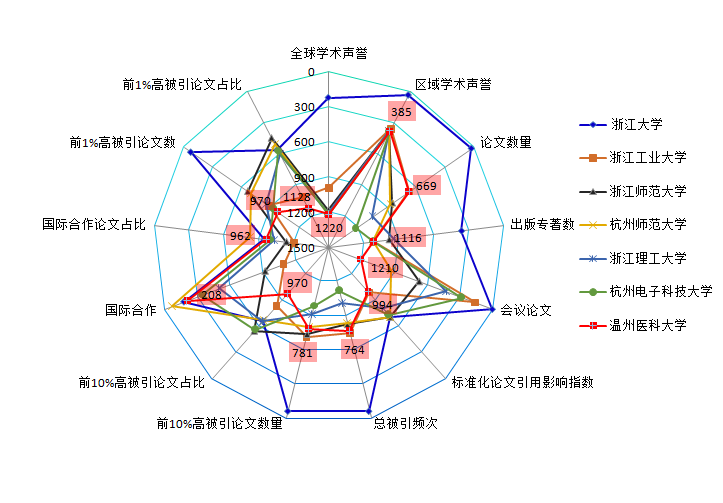 图五浙江省高校分指标国际排名情况