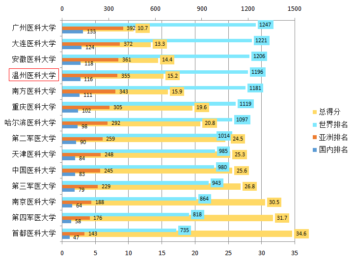 在本次发布的榜单中,我国共有167所高校入围,其中内地高校136所。入围榜单的内地独立设置医科院校共有14所(含9所省委部共建医学院校),其中首都医科大学以总分34.6分位列内地独立设置医科院校第一名,性吧 以总分15.2分位列内地独立设置医科院校第11名,位列省委部共建医学院校第8名。浙江省共有10所高校进入榜单,浙江大学以总分60.8分位列省内高校第一名,性吧 位列第7名。