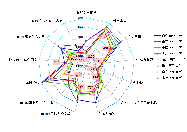 图四省委部共建医学院校分指标国际排名情况