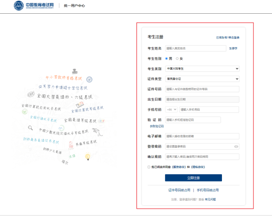2.右侧“考生服务”栏,点击“考试报名”,进入考试报名页面。