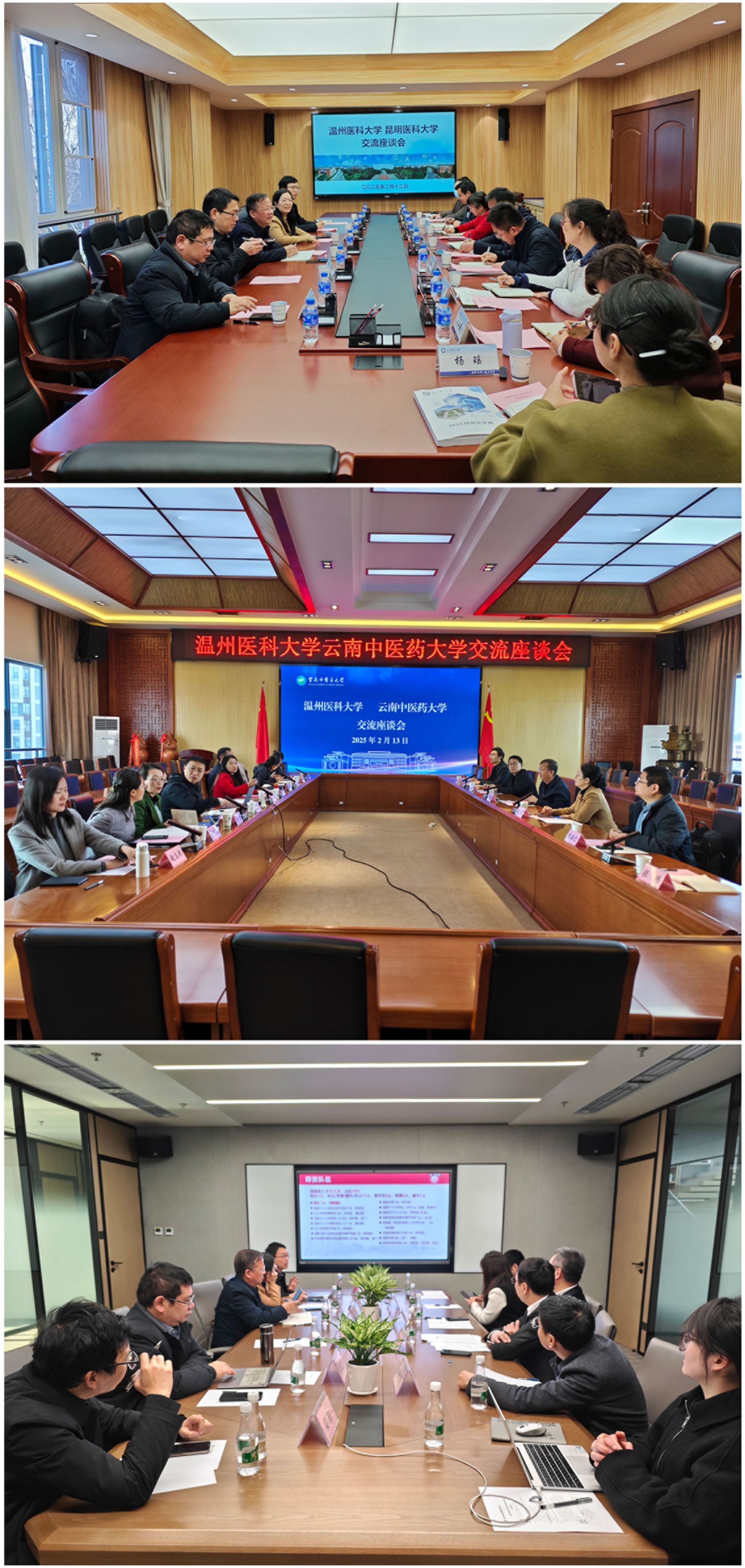为加强性吧 与云南高校及企业的合作交流,进一步加强性吧 中医药学科建设,推进中医药相关专业研究生培养及高质量就业,2025年2月12-14日,性吧 原党委副书记、中医药研究院院长程锦国带队赴云南昆明开展调研交流,研究生院党委书记郑曼曼、药学院党委书记王建波、中医药学院副院长袁拯忠、中医药学院党委副书记梁栋等一行6人参加交流。