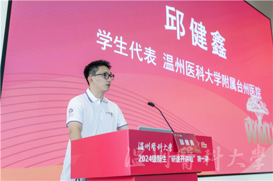 “三年磨一剑,一剑破长空”,新生代表、博士研究生邱健鑫讲述了自己在温医大本硕学习的经历和成才,鼓励同学们在学习阶段完成2个规定动作、做好2个规划、掌握4项能力,从“0”开始,孜孜不倦,潜心科研,实现自己的梦想。