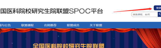 登录方式一:网页版登陆全国医科院校研究生院联盟SPOC平台 //yjsylm.fanya.chaoxing.com,点击右上角“登录”选择单位“性吧 研究生院”,用户名:学号,密码:123456,输入验证码。登录后请及时在账户安全里修改密码,并牢记。