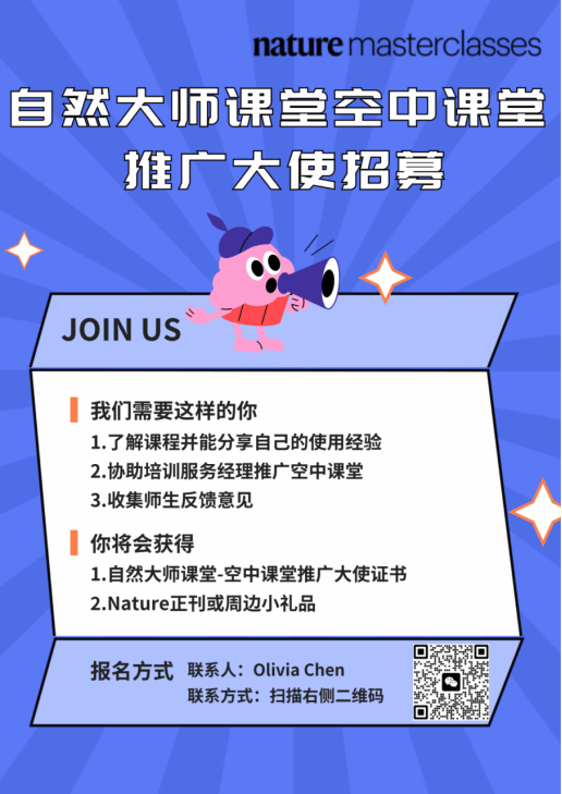 自然大师课堂-空中课堂(Nature Masterclasses On-demand)是依托于《自然》丰富的学术出版经验而开发的专业科研培训在线课程,主要由《自然》系列期刊编辑、国际知名学府教授、顶尖研究机构的科学家、资助机构及产业界人士等亲授的预录制课程组成,为处于事业不同阶段的科研人员提供权威期刊编辑和资深研究人员的直接指导,助力学生及科研人员掌握职业发展必备的技能。