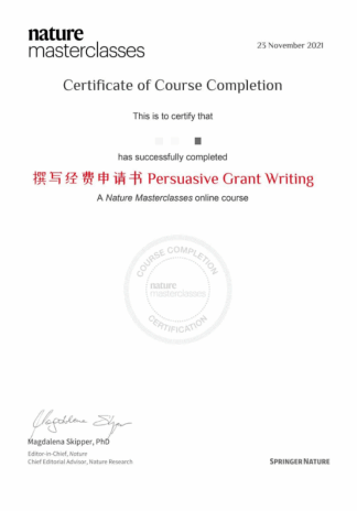 学员完成每项课程后,可下载学习证书,作为接受过相关培训的证明,证书由《自然》总编辑Magdalena Skipper签发。