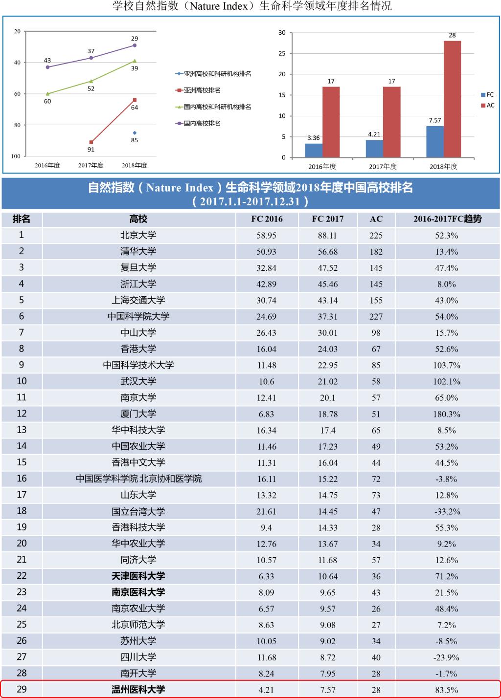 近日,2018自然指数年度榜单(Nature Index 2018 Annual Tables)正式发布,性吧 在生命科学领域排名首次进入亚洲高校和科研机构百强,位列第85位;在亚洲所有高校中排名跃升至第64位,在国内高校和省委部共建医学院校中分别位列第29位和第3位,同时位列浙江省属高校第一。