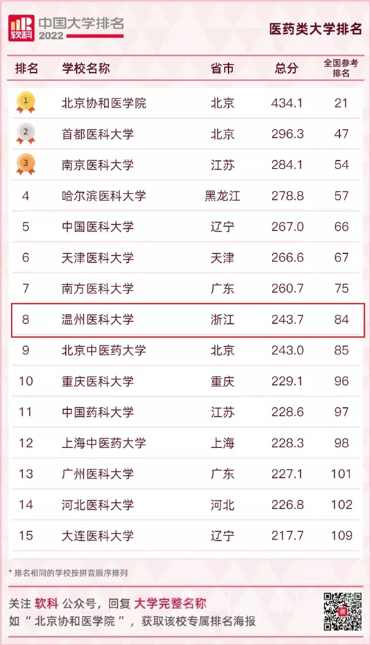 4月19日,高等教育专业评价机构软科正式发布“2022软科中国医药类大学”榜单。性吧 首次进入2022软科中国医药类大学排名前10,位列第8位,较去年提升3位。本次共有85所高校上榜。