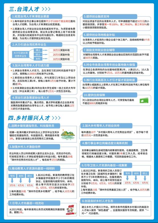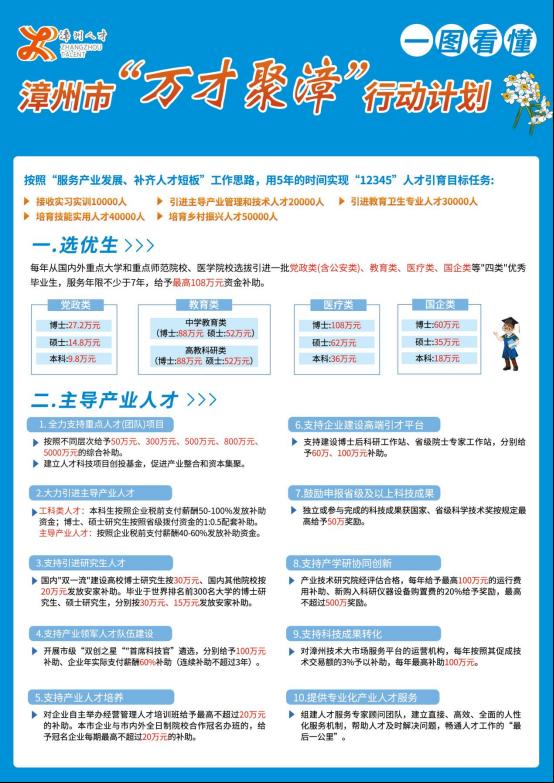 为深入贯彻习近平总书记关于新时代人才工作的新理念新战略新举措,贯彻落实中央人才工作会议各项部署要求,坚持人才优先发展战略,聚焦漳州产业发展和教育、医疗卫生等领域人才需求,加快推进“万才聚漳”行动计划,努力营造揽才、敬才、爱才、用才的良好环境,为在新的起点上加快建设现代化滨海城市、奋力谱写富美新漳州建设新篇章汇聚千千万万的人才支撑。2021年“人才漳州月”赴外大规模引才招聘活动火热进行中,已发布海量优质岗位信息,敬请关注。