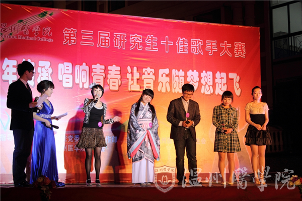 “踏上征程,一步一个脚印地走来,百年的风云,卷不去桑梓情怀。在这硕果累累和盛世簇拥的季节里,让我们用最赤诚的爱为母校歌唱,歌唱母校谱写的华美篇章;让我们用最赤诚的爱为母校祝福,祝福母校鹏程万里、龙腾凤翔!为了温医人共同的光荣和梦想,用我们的青春、汗水和对母校最诚挚的爱,传承薪火,唱响青春!”围绕学校“百年传承”纪念活动,温州医学院第三届研究生十佳歌手大赛决赛近日在同德楼广场举行,16名选手经过初赛环节的精彩表现脱颖而出,在决赛的舞台上用歌声尽情诠释青春梦想和对母校的爱。