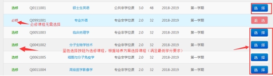 (若课程为必修,则系统自动选上且无法进行退选的操作)