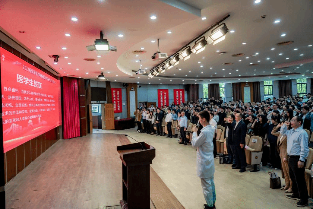 “健康所系、性命相托……”典礼最后,全体新生共同重温“医学生誓言”,回顾医者初心,不忘担当使命。