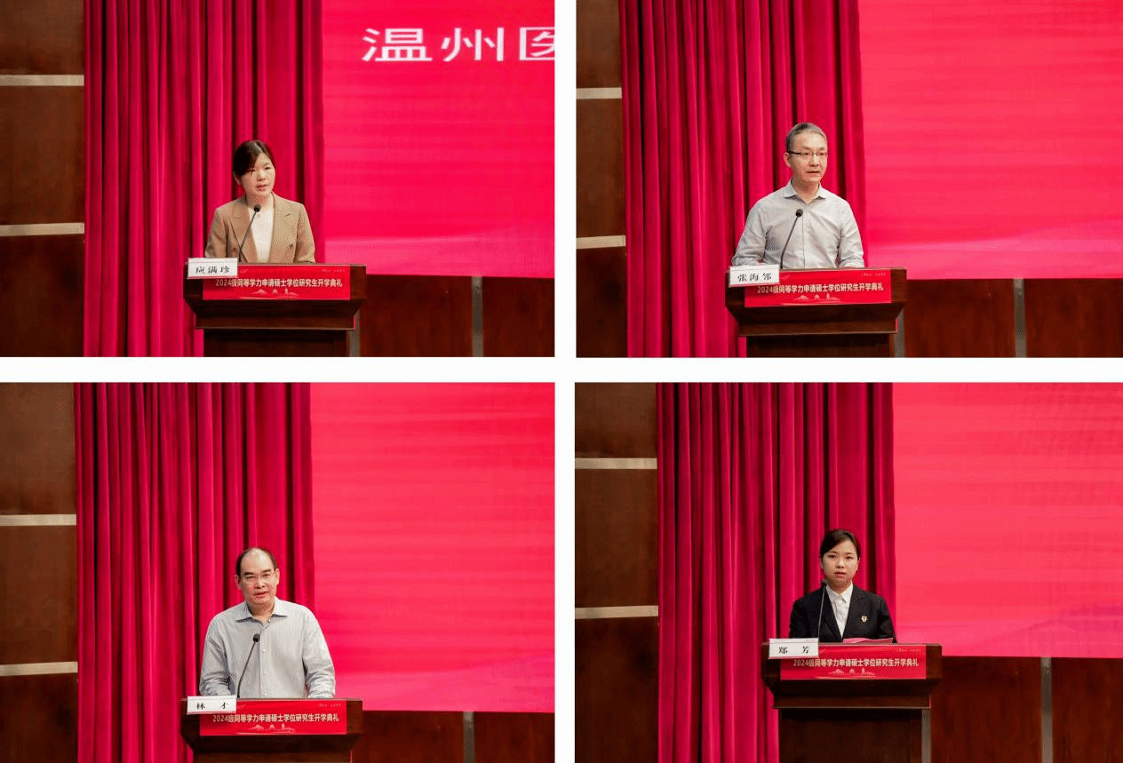 同等学力研究生培养基地代表性吧 附属东阳医院(东阳市人民医院)副院长应满珍对基地同等学力研究生教育工作后续发展规划作简要介绍;导师代表张海邻以“纵有疾风起,人生不言弃”为新生们做开学演讲,鼓励同学们不负韶华,坚信路虽长行则将至;2004级校友代表,现性吧 附属第一医院烧伤外科主任林才,希望大家珍惜学习机会,奋斗步履不止;2024级同等学力研究生郑芳作为新生代表发言,表达了对研究生学习的憧憬、期待以及面对未知困难坚定的信念和勇气。