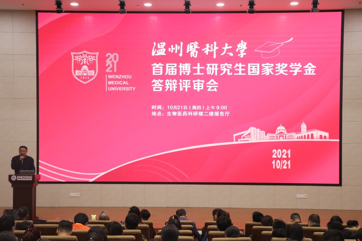 汇报环节,候选人围绕研究生思想道德素质、学术科研创新能力、实践能力等方面的突出表现依序展开自我陈述。检验医学院(生命科学学院)2019级临床检验诊断学博士研究生楼筱婷将科研成果应用于临床实践,面对年仅三岁、世界上第一例明确ACACA基因缺陷病人,她与团队攻坚克难,利用血液建立永生化淋巴细胞系,运用siRNA技术建立ACACA基因敲低细胞模型,辅以油脂制剂保健品(MCT oil)治疗,得益于她的研究,罕见病小女孩日渐好转。第一临床医学院(信息与工程学院)2019级外科学博士研究生邓礼明兼顾学术与临床实践,在每年完成约50例肝胆胰恶性肿瘤手术的基础上,完成了肝胆胰恶性肿瘤临床数据库的建立。眼视光学院(生物医学工程学院)2019级眼科学博士研究生施策致力于研究眼科影像相关技术、人工智能与机器学习在眼科及退行性疾病领域的应用,主要研究成果已在2020年被欧洲神经学会列为指南参考,并于2021年被美国神经内科临床手册收录。来自药学院2019级药学专业博士研究生杨选鑫创制新药完成FGF21应用于治疗脑中风和FGF10应用于治疗糖尿病皮肤溃疡、骨关节炎和脂肪肝的理论创新,积极参加创新创业竞赛,推动研究成果转化。第二临床医学院2020级康复医学与理疗学博士研究生应新旺参与并推动温州康复医院的项目落成,借助于康复医学的新兴发展,在科研道路上探索属于他的一片天……