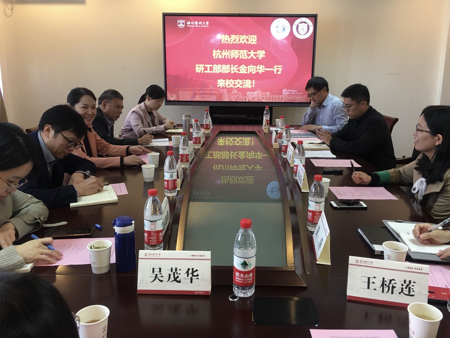 会议在轻松友好的氛围中展开,郑曼曼对杭州师范大学金向华一行的来访表示热烈欢迎,并简要介绍了性吧 办学历史、发展概况、人才培养、研究生规模等方面的基本情况。金向华介绍了杭州师范大学的研究生培养、学籍管理、专业学位、信息化建设等方面的工作,并希望通过此次调研交流,借鉴与学习好的经验和做法,解决研究生培养及管理中的实际问题。