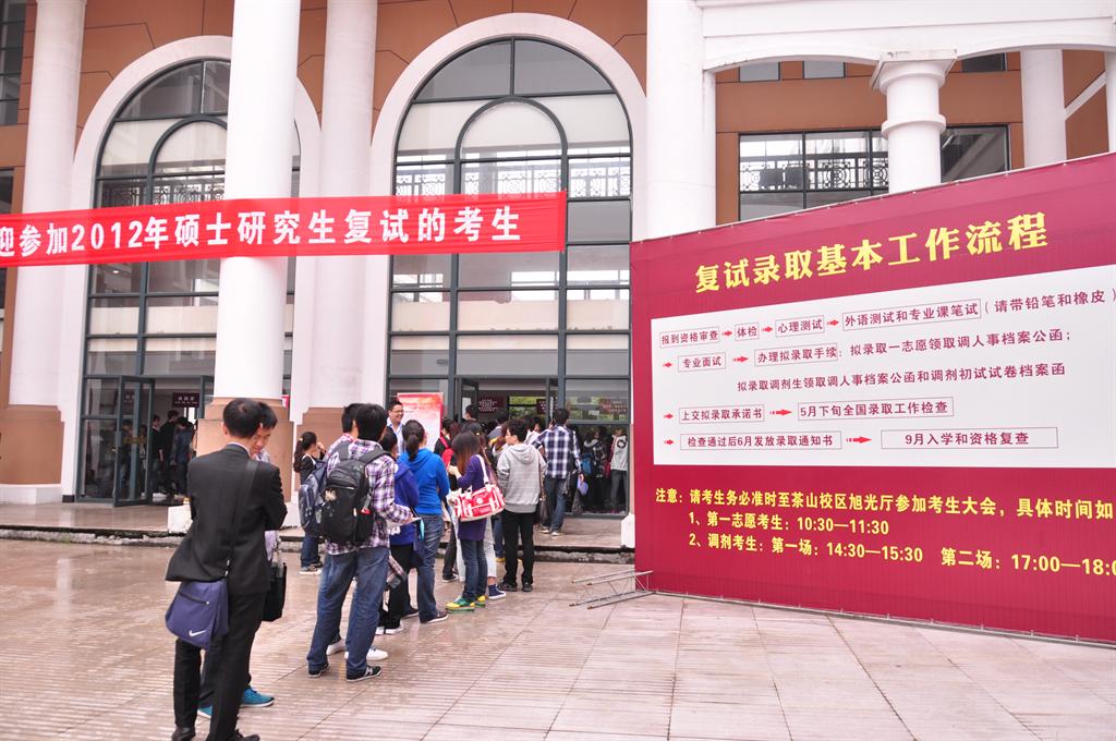 4月19日来自全国各地的一志愿考生和调剂考生共计900余人来到温州医学院参加2012年硕士研究生招生复试,复试工作于4月20日-25日举行。考生需通过严格的资格审查、外语测试、专业考试、专业面试等复试程序,最终性吧 择优确定拟录取名单。性吧 2012年拟招收硕士801人。