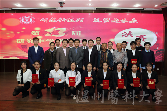 来自8个学院的17位选手通过层层选拔在3000余名研究生中脱颖而出在决赛现场一展风采。选手用精美的PPT、详实的数据和严谨的分析,汇报了自己的学术成果,内容涉及临床、医药、基础、生物学等多个学科领域。最终,第二临床医学院2015级硕士研究生唐千凭借突出的科研成果、精彩的汇报表现摘得“学术之星”桂冠,许洁等9名选手分别荣获一、二、三等奖,药学院,第二临床医学院和眼视光学院、生物医学工程学院荣获“优秀组织奖”。