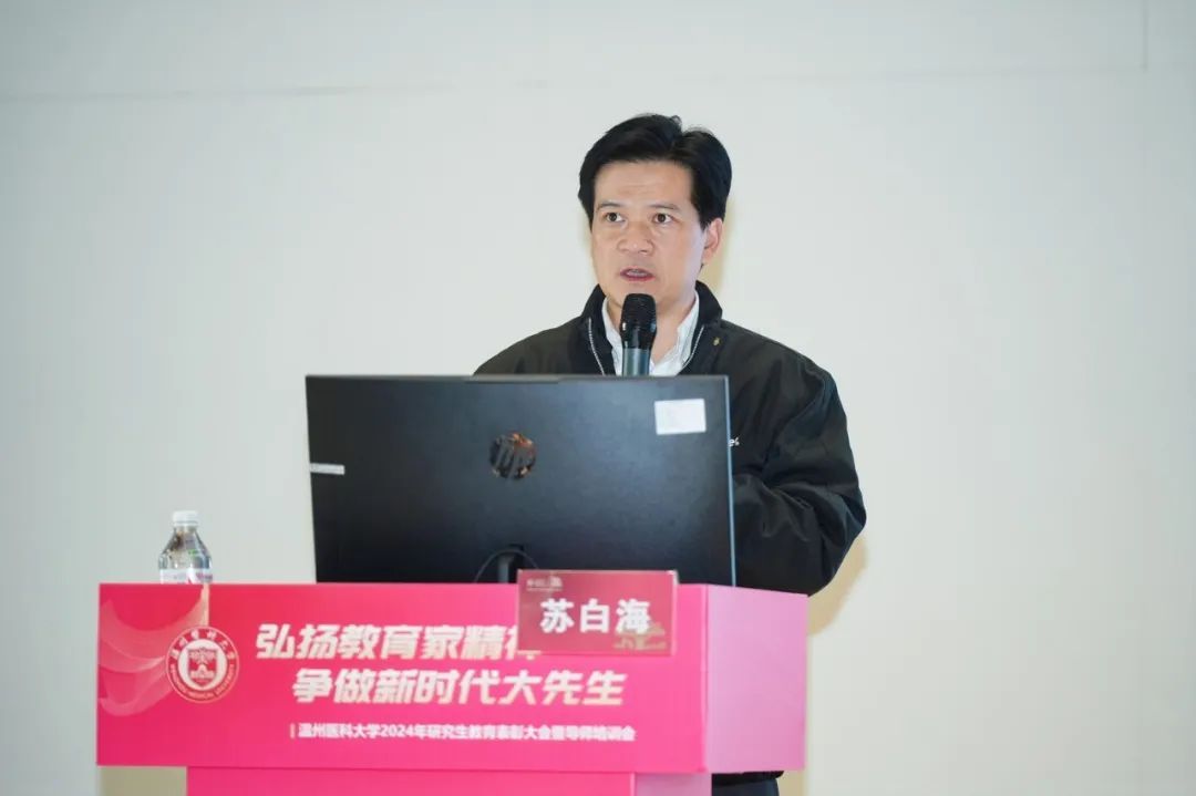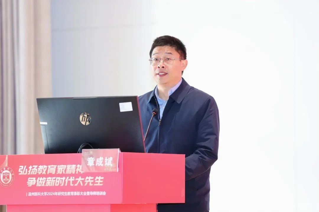 校党委副书记章成斌在讲话中充分肯定了2024年性吧 研究生教育取得的成绩。他指出,提升教师队伍育人能力,是有效落实立德树人根本任务的前提和基础,也是实现高层次人才培养目标的有效载体和重要抓手。他强调,要落实立德树人,弘扬教育家精神。以教育家精神为引领,努力做精于“传道授业解惑”的“经师”和“人师”的统一者,真正成为一名引领研究生成长成才的指路明灯、学术表率和良师益友。要提升教书育人能力,提高人才培养质量。争做表率,强化引领,努力探索科学前沿,积极践行学术规范,引导学生把学习奋斗的具体目标同民族复兴的伟大目标结合起来,把人生抱负落实到脚踏实地的实际行动中来。要营造和谐导学氛围,构建导学发展共同体。做到严爱相济,关注学生学业科研及生活、心理状况,整合校内外育人资源,寻找人才培养质量、安全稳定以及心理健康之间的平衡点,共同推动性吧 研究生培养质量再上一个新台阶,为性吧 “双一流”创建和高水平医科大学建设做出新的更大的贡献!