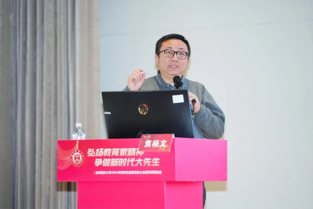 在专题报告环节,温州市政协第十一届副主席、党组副书记黄寿龙作题为《领导力的一些思考》的专题报告,从提升管理人员的战略思维、决策能力、沟通能力等方面分享了高屋建瓴又贴切实际的管理经验。中国美术学院副研究员韩亮作题为《教学成果奖的特性与选育策略探讨》的专题报告,从教学成果奖的特性、报奖项目的选育条件、长期培育策略、申报书的撰写技巧和报奖工作的组织推进等方面深刻解析了教学成果奖培育及申报全过程。浙江大学求是特聘教授、博士生导师高建青作题为《快乐和谐的研究生导学团队建设》的经验分享,生动形象地分享了其在构建快乐和谐的研究生导学团队中的经验和思考,并传授了研究生与导师相处关系的技巧。四川大学华西医学院研究生部部长苏白海作题为《临床医学胜任力培养的华西实践》的经验交流,系统讲述了华西医学院在一流导师队伍建设、课程建设、信息化赋能等方面的实践探索。浙江大学医学院附属第一医院科研部副主任焦杨文作题为《研究生导师可能会涉及科研失信行为问题的探讨》,从近年来曝光的一小部分科研失信行为入手,系统介绍规避学术失信行为的做法要求。